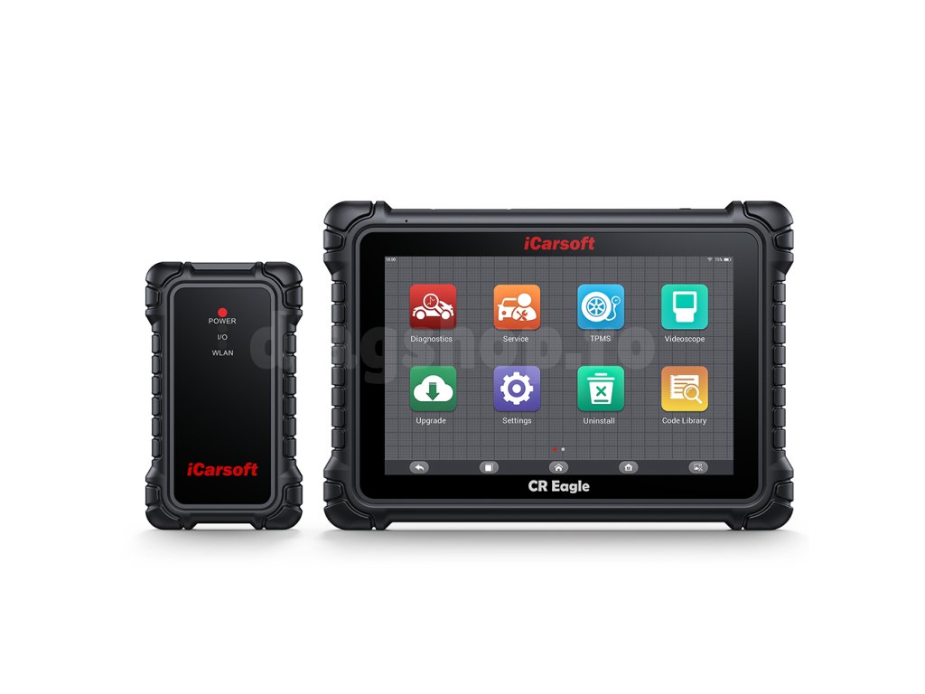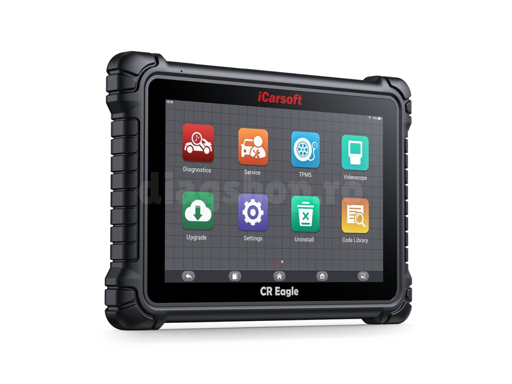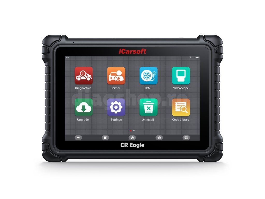 iCarsoft CR Eagle oferă funcții de diagnosticare completă pentru majoritatea mărcilor europene, asiatice și americane, împreună cu funcții avansate de service. Instrumentul CR Eagle se conectează la toate calculatoarele autovehiculului, poate citi codurile de pregătire și, de asemenea, include peste 38 de funcții de service - precum resetarea intervalelor de service, diagnosticarea și regenerarea DPF, configurări de bază ale clapetei de accelerație, resetarea adaptărilor transmisiei automate, diagnosticare TPMS de bază, înregistrarea bateriei, codarea injectoarelor, precum și codarea cheilor și a telecomenzilor, alături de multe alte sarcini. Dispozitivul suportă testarea actuatorului, adaptări și codări.
