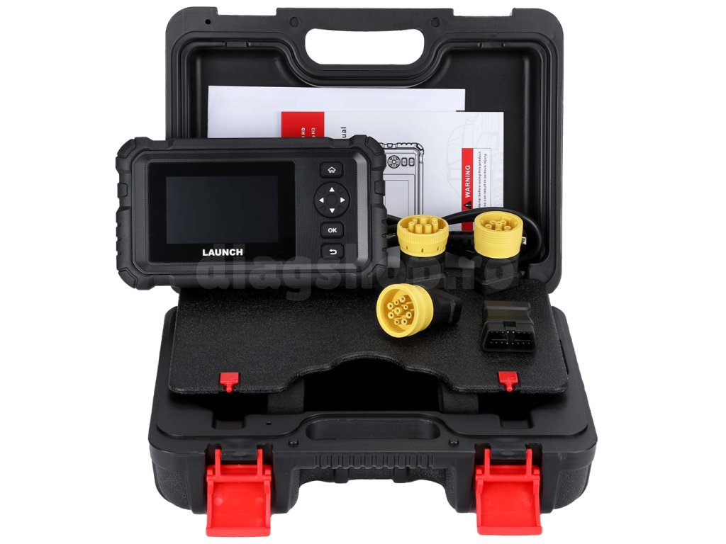 Launch CRP129 HD Elite este special conceput pentru diagnosticarea camioanelor. Acesta permite diagnosticarea pentru aproape toate mărcile. Se conectează la toate calculatoarele (motor, ABS, airbaguri, transmisie și multe altele), poate citi și șterge mesajele de eroare, poate afișa date în timp real și efectua teste active, adaptări și codări. Selectarea vehiculului se face automat datorită detectării VIN-ului. Dispozitivul este acum echipat cu un ecran tactil de 4", dar are și butoane standard. Rulează pe o versiune mai nouă de Android, ceea ce asigură o funcționare mai fluidă și mai rapidă. În plus, are propria baterie, astfel încât nu se oprește atunci când este deconectat de la autovehicul.
