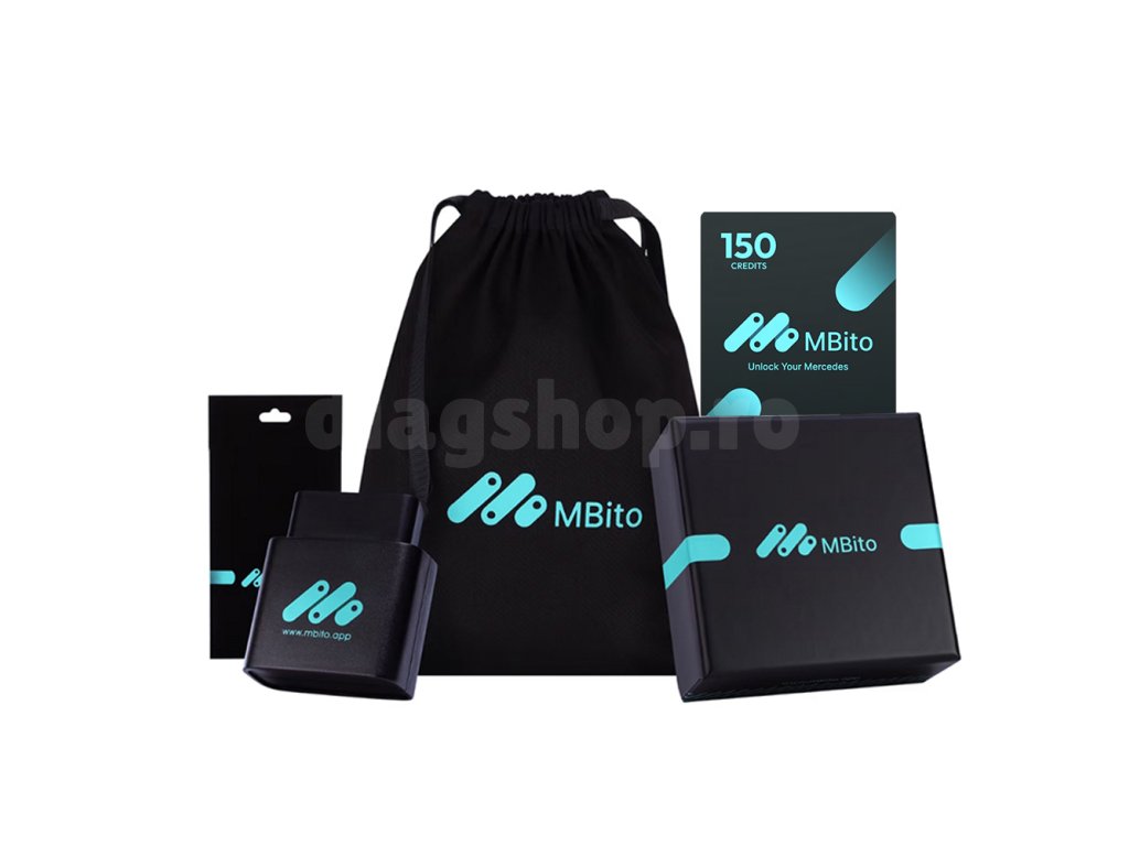 MBito este o soluție de diagnosticare pentru autovehiculele marca Mercedes. Adaptorul se utilizează împreună cu o aplicație de diagnosticare prevăzută cu software Android sau iOS. MBito se conectează la toate calculatoarele din autovehicul și poate citi și șterge erorile stocate în unități. Ulterior, este posibil să se facă ajustări ale autovehiculului și să se deblocheze cu ușurință multe funcții ascunse. Pentru accesarea anumitor funcții este necesară achiziția de credite.